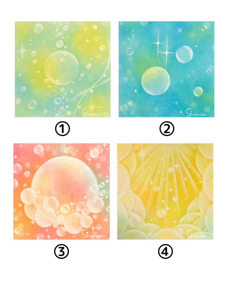 4枚のアートの中から、今あなたが気になる、目に留まるアートを1枚選んでみてくださいね。